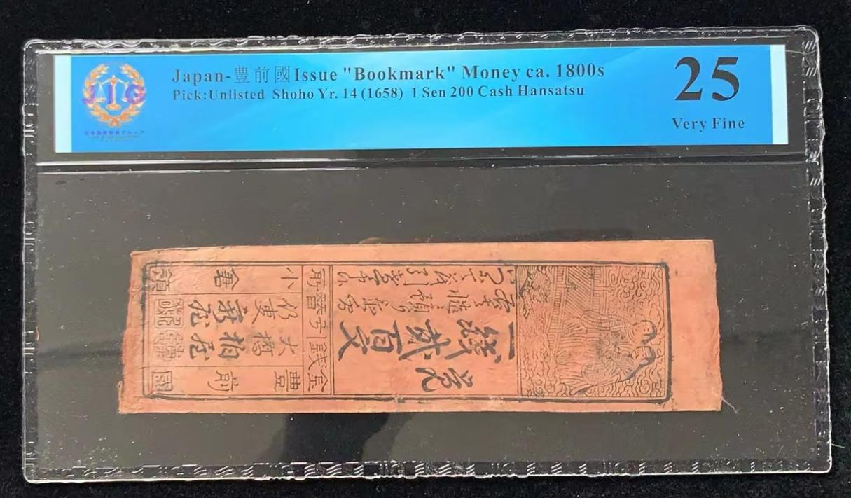 日本 / 豊前國 发行的“书签”货币 ca. 1800s, 1 钱 200 文 正保 Yr. 14 (1658) 藩札