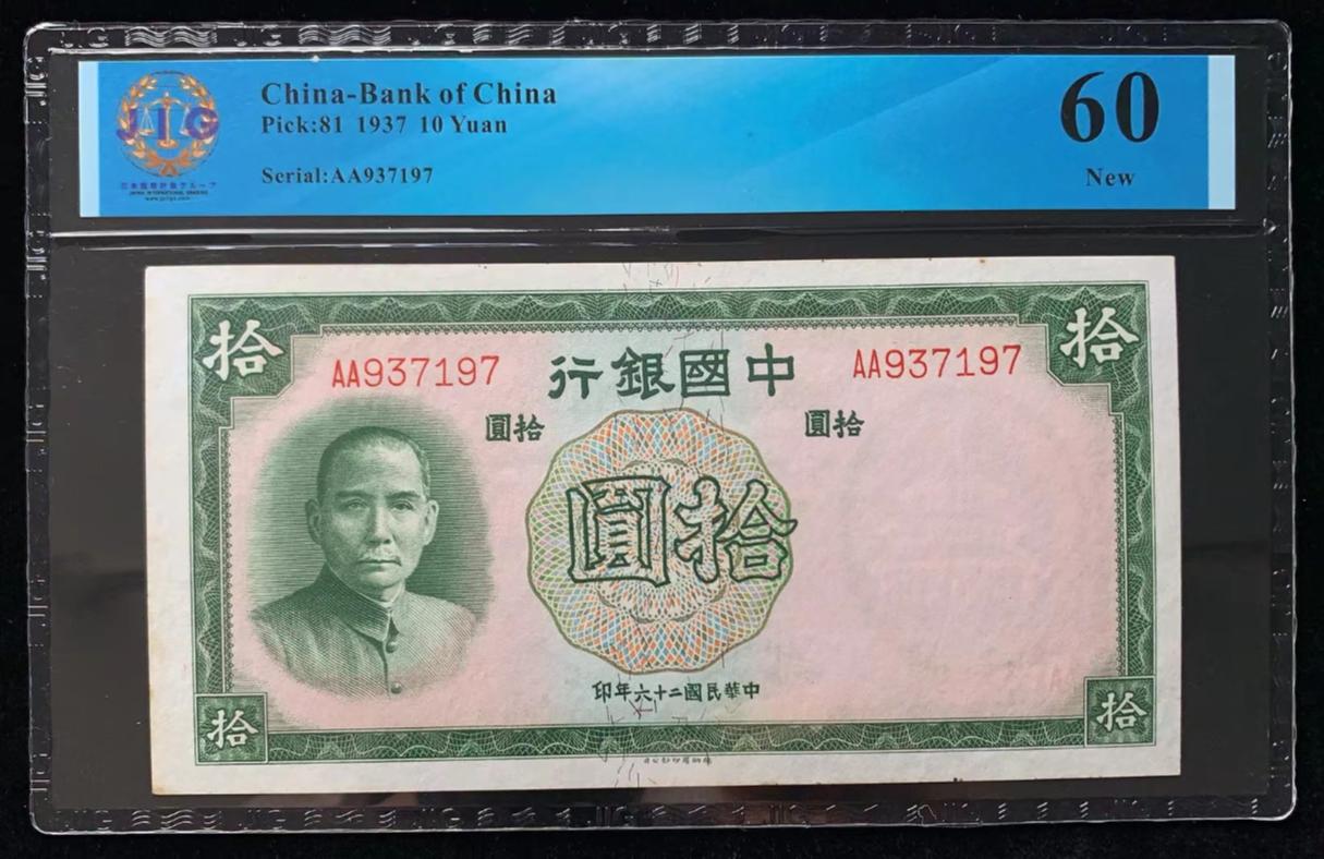 中国 / 中国银行, 10 元 1937