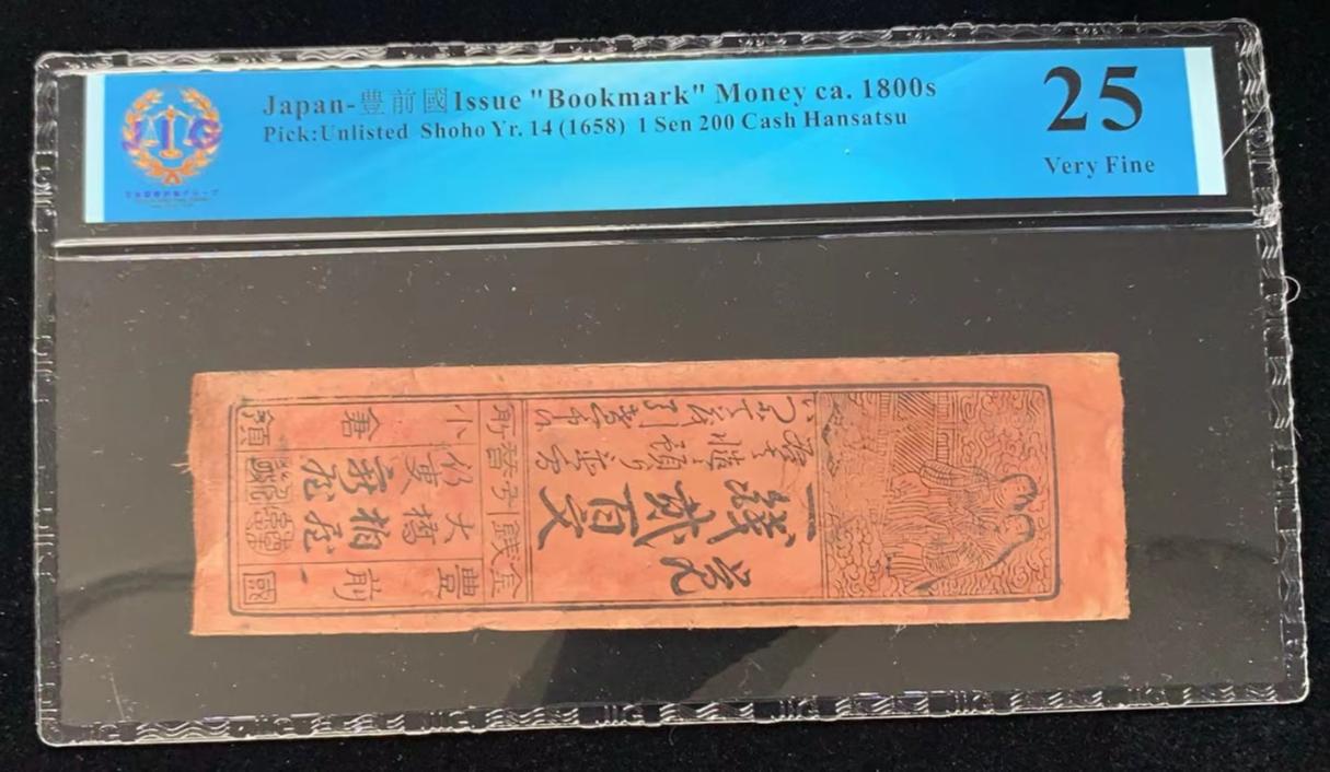日本 / 豊前國 发行的“书签”货币 ca. 1800s, 1 钱 200 文 正保 Yr. 14 (1658) 藩札