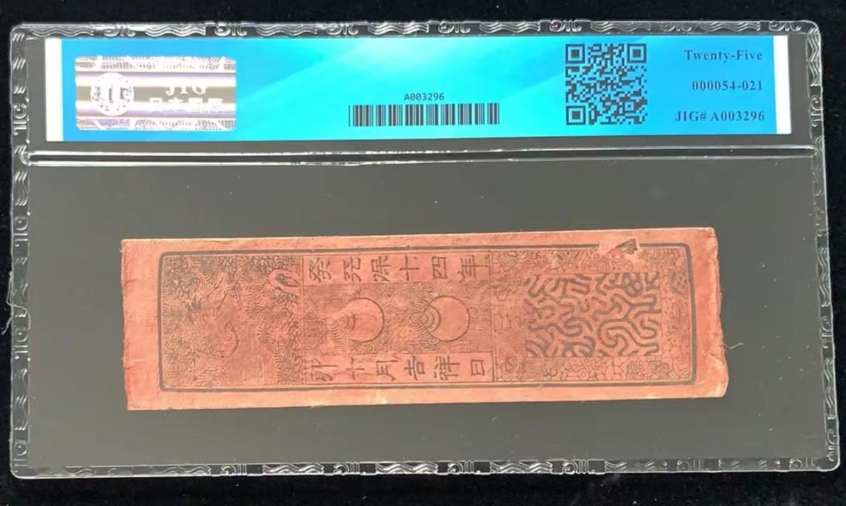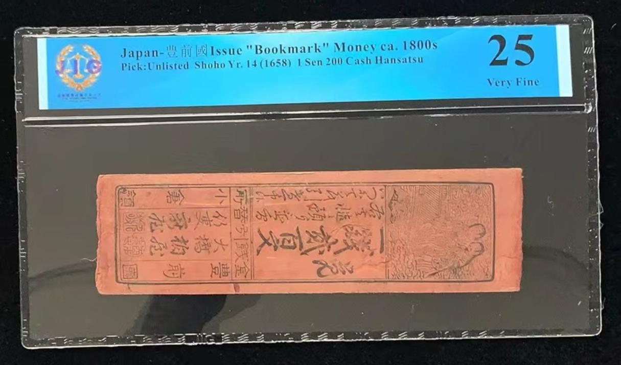 日本 / 豊前國 发行的“书签”货币 ca. 1800s, 1 钱 200 文 正保 Yr. 14 (1658) 藩札
