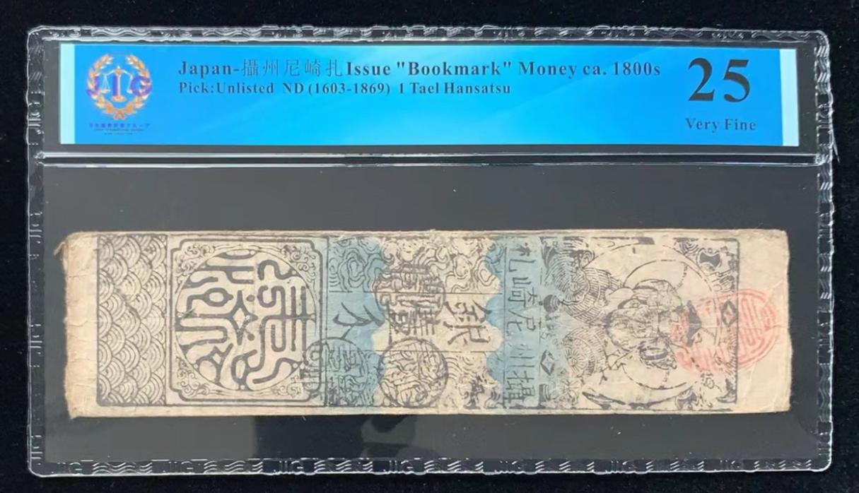 日本 / 攝州尼崎扎 发行的“书签”货币 ca. 1800s, 1 两 ND (1603-1869) 藩札