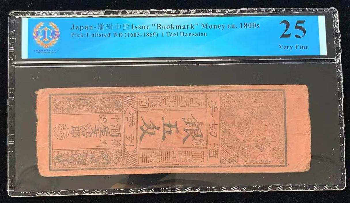 日本 / 播州中野 发行的“书签”货币 ca. 1800s, 1 两 ND (1603-1869) 藩札