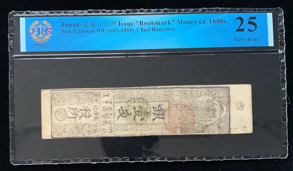 日本 / 鑑蓮社役所 发行的“书签”货币 ca. 1800s, 1 两 ND (1603-1869) 藩札