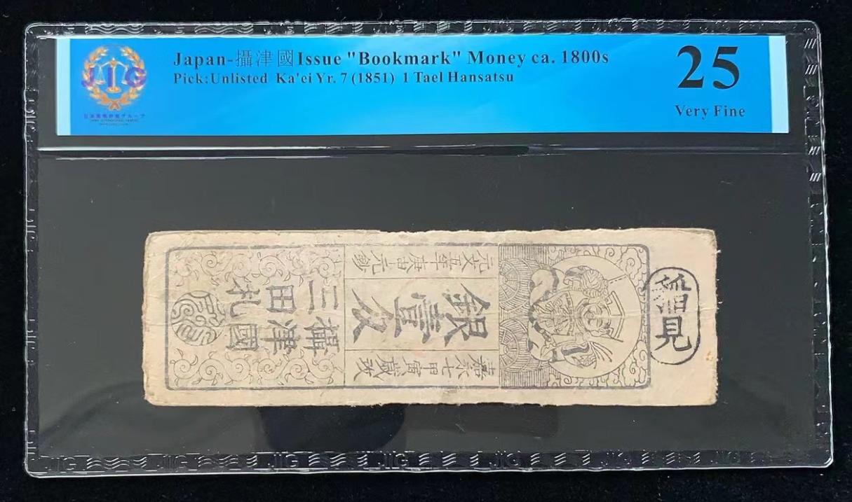 日本 / 攝津國 发行的“书签”货币 ca. 1800s, 1 两 嘉永 Yr. 7 (1851) 藩札