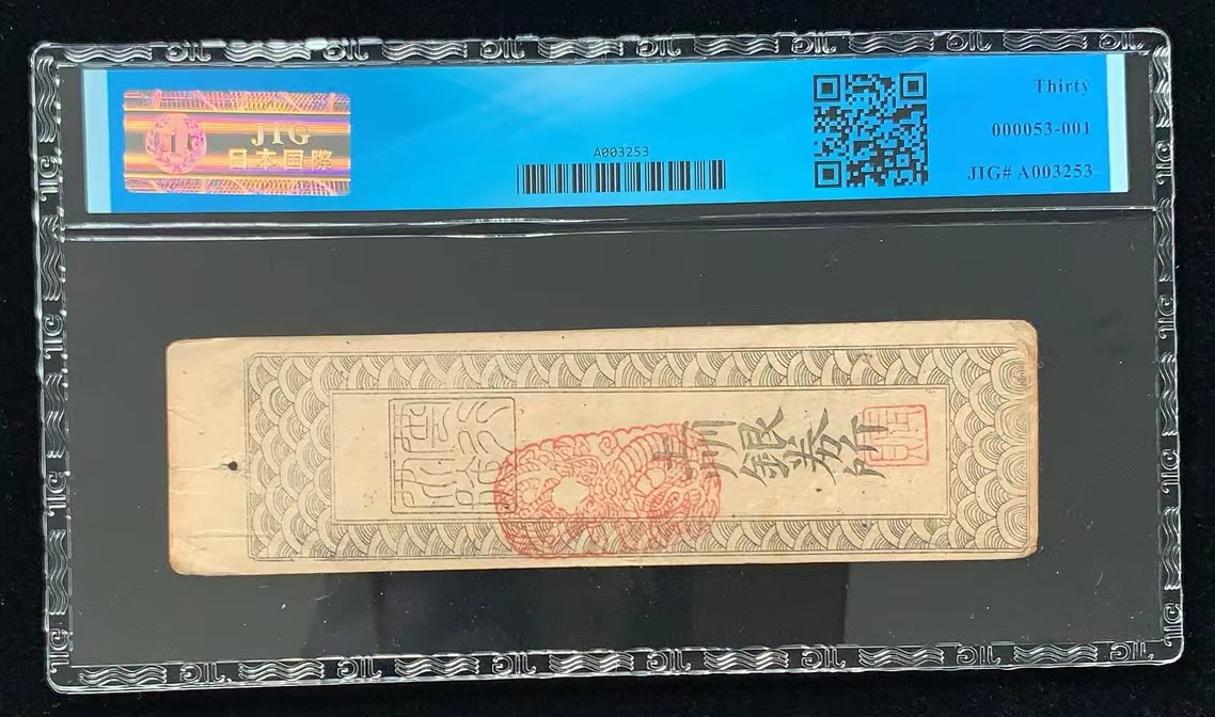 日本 / 土州銀行券所 发行的“书签”货币 ca. 1800s, 1 贯 ND (1603-1869) 藩札