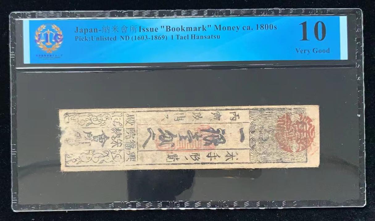 日本 / 納米會所 发行的“书签”货币 ca. 1800s, 1 两 ND (1603-1869) 藩札
