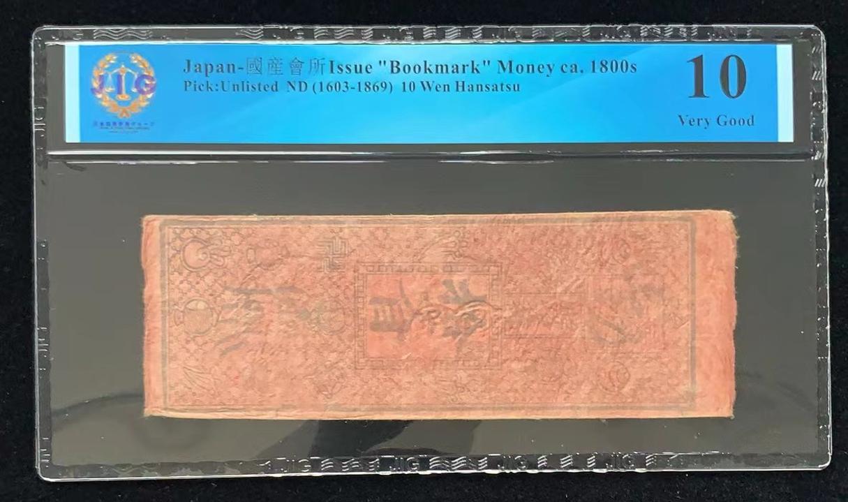 日本 / 國産會所 发行的“书签”货币 ca. 1800s, 10 文 ND (1603-1869) 藩札