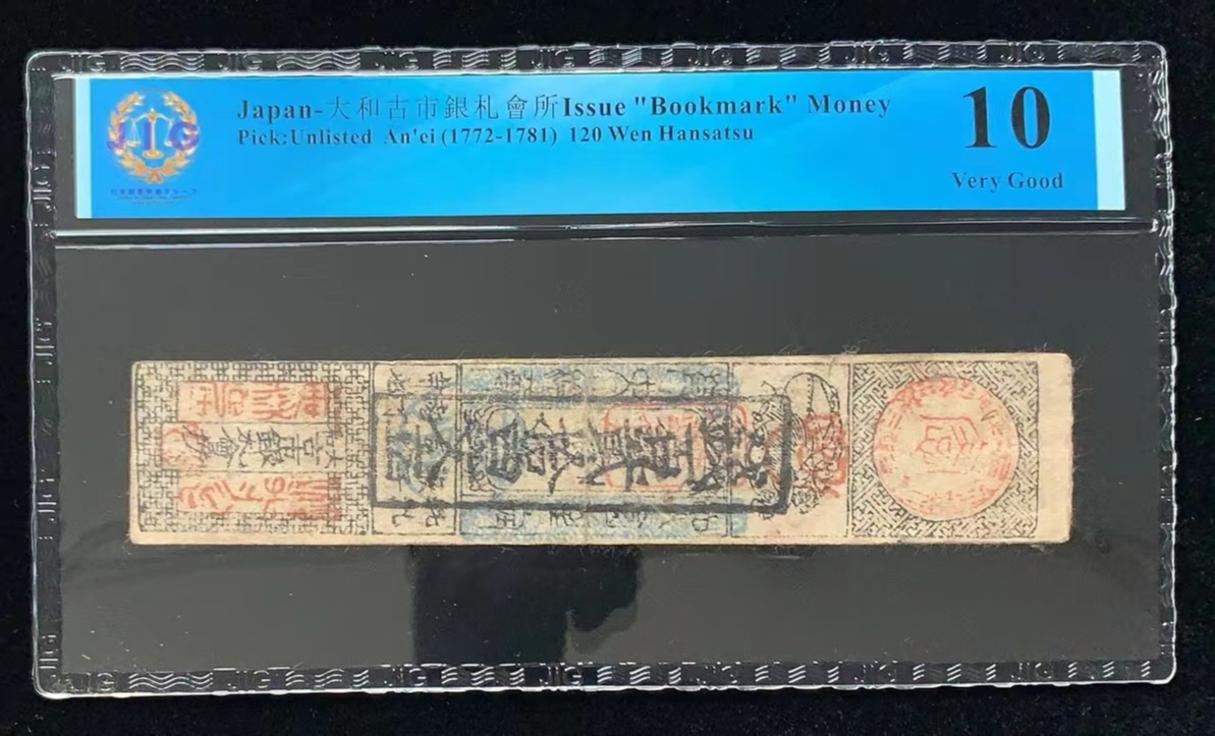 日本 / 大和古市銀札會所 发行的“书签”货币 ca. 1800s, 120 文 安永 (1772-1781) 藩札