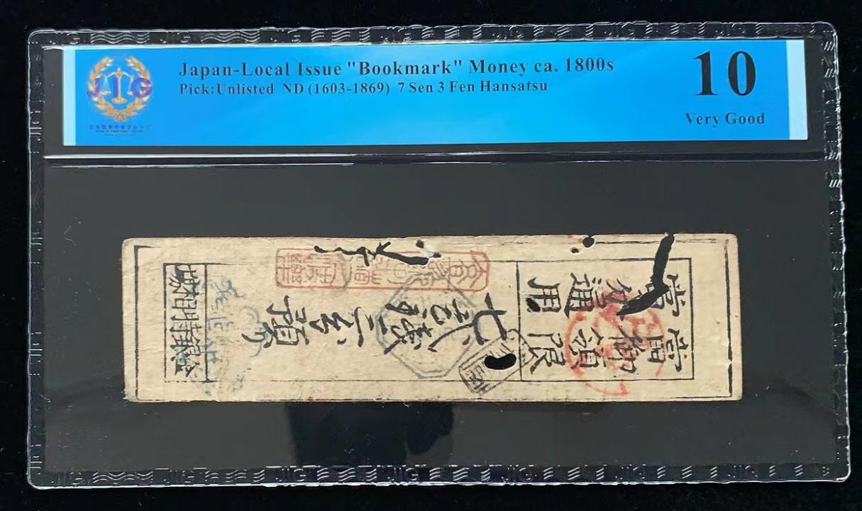 日本 / 本地发行的“书签”货币 ca. 1800s, 7 钱 3 分 ND (1603-1869) 藩札