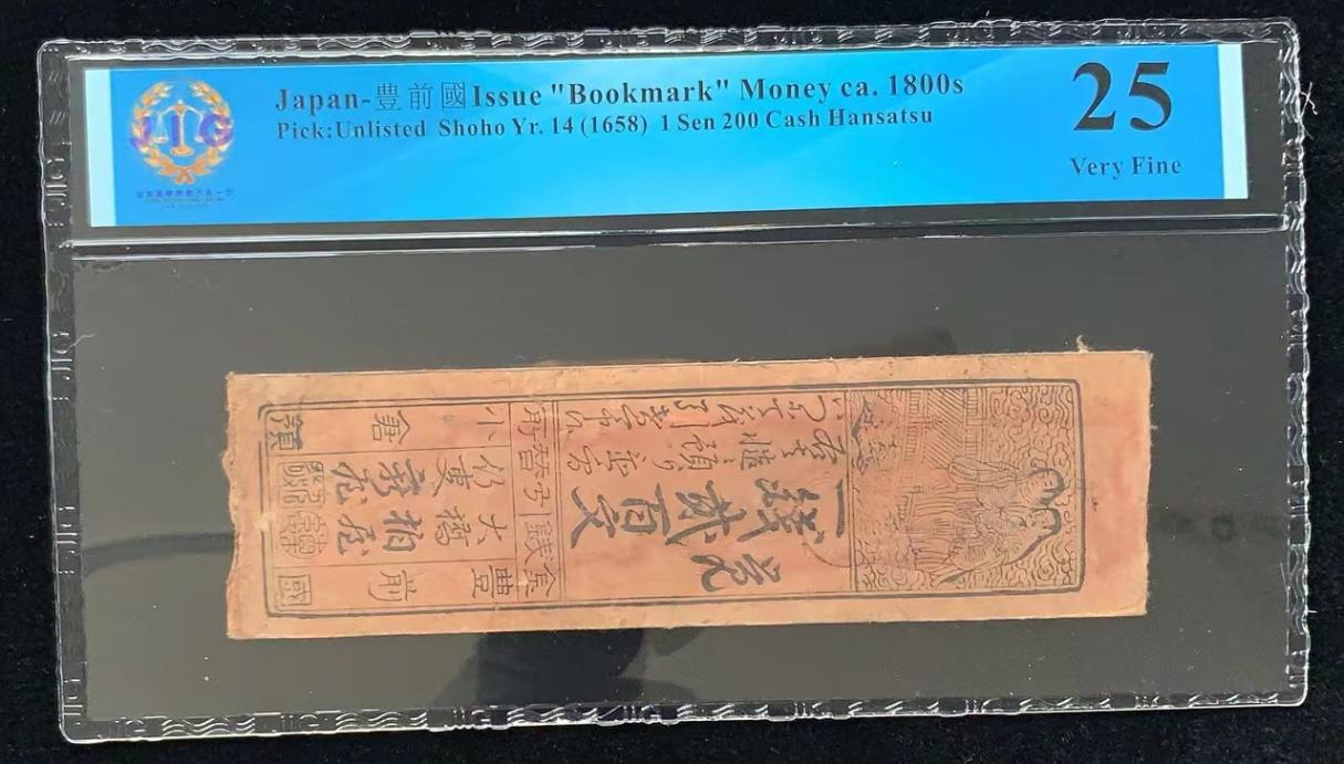 日本 / 豊前國 发行的“书签”货币 ca. 1800s, 1 钱 200 文 正保 Yr. 14 (1658) 藩札
