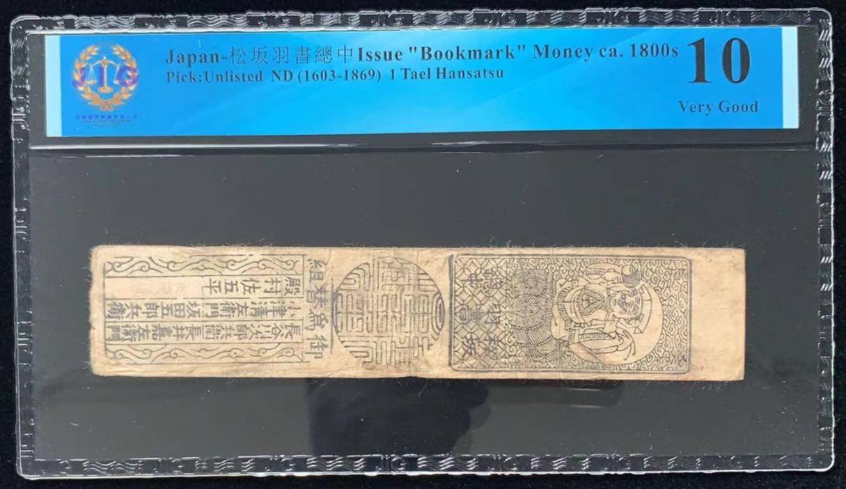 日本 / 松坂羽書總中 发行的“书签”货币 ca. 1800s, 1 两 ND (1603-1869) 藩札