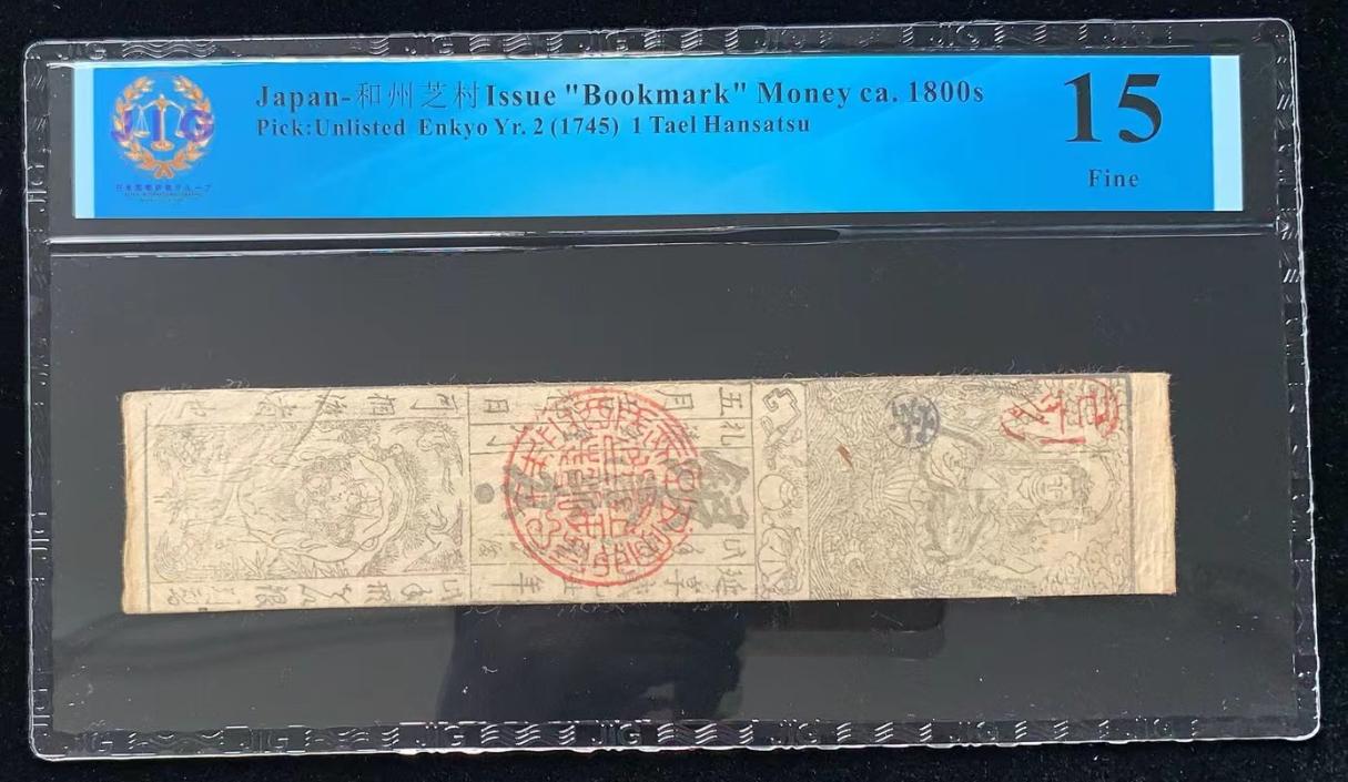 日本 / 和州芝村 发行的“书签”货币 ca. 1800s, 1 两 廷享 Yr. 2 (1745) 藩札