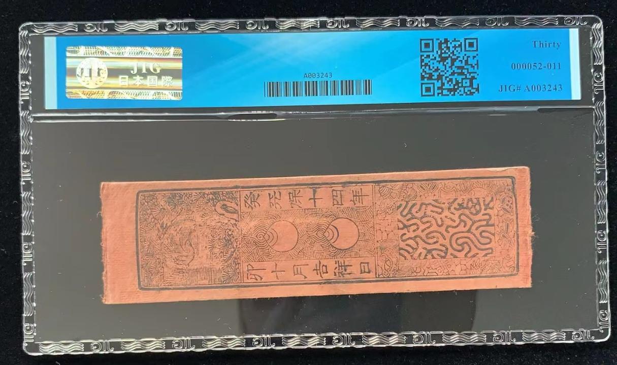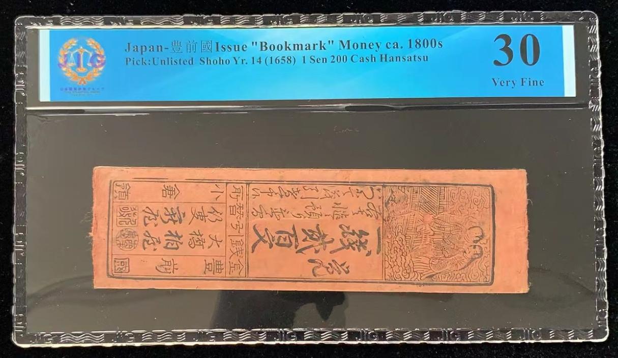 日本 / 豊前國 发行的“书签”货币 ca. 1800s, 1 钱 200 文 正保 Yr. 14 (1658) 藩札