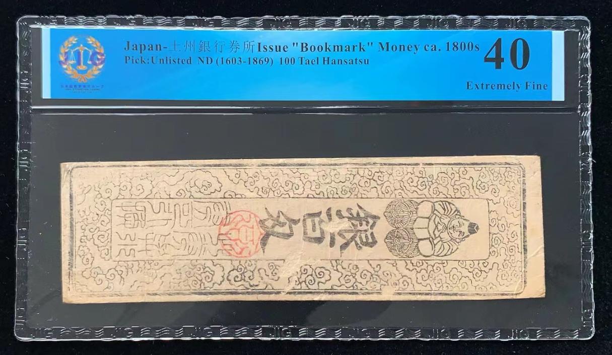 日本 / 土州銀行券所 发行的“书签”货币 ca. 1800s, 100 两 ND (1603-1869) 藩札