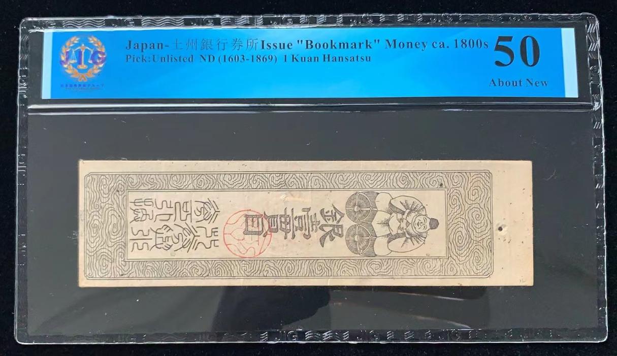 日本 / 土州銀行券所 发行的“书签”货币 ca. 1800s, 1 贯 ND (1603-1869) 藩札