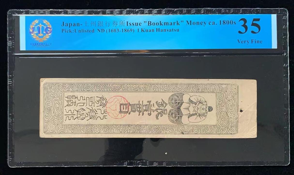 日本 / 土州銀行券所 发行的“书签”货币 ca. 1800s, 1 贯 ND (1603-1869) 藩札