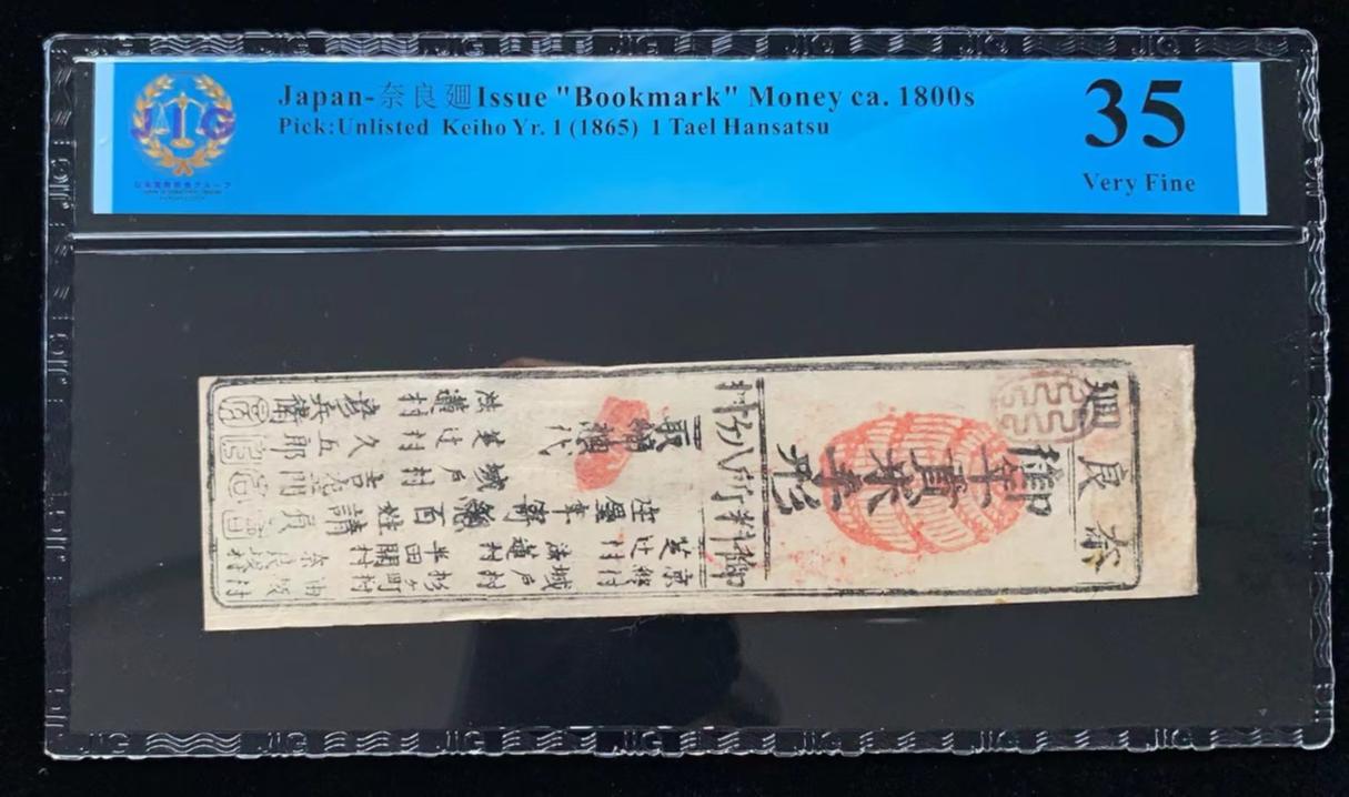 日本 / 奈良廽 发行的“书签”货币 ca. 1800s, 1 两 慶應 Yr. 1 (1865) 藩札