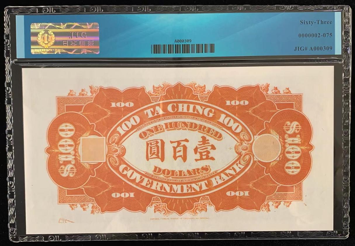 中国 / 大清银行, 100 美金 ND(1910), 复制品