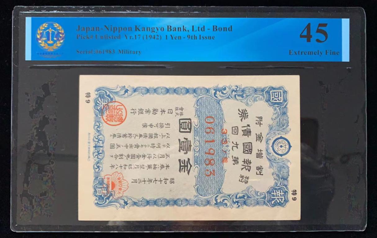 日本 / 日本劝业银行-债券, 1 日元 Yr.17 (1942)- 第九次发行