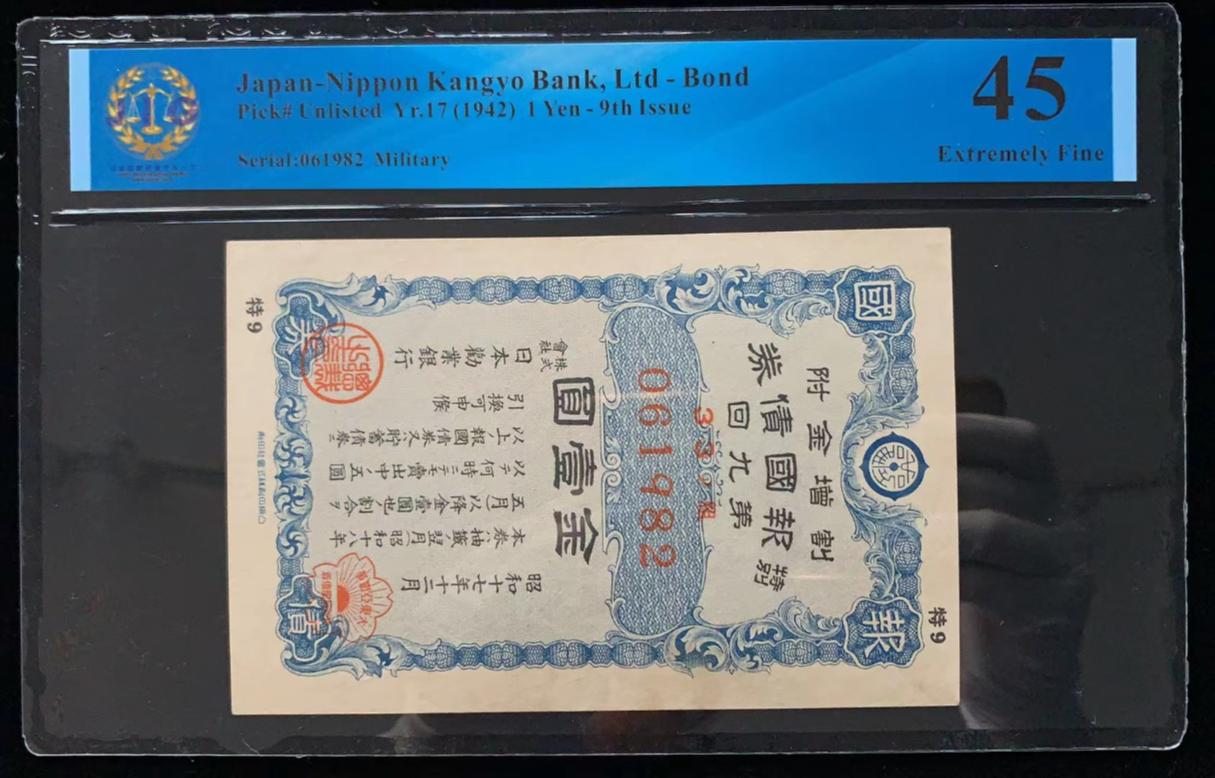 日本 / 日本劝业银行-债券, 1 日元 Yr.17 (1942)- 第九次发行