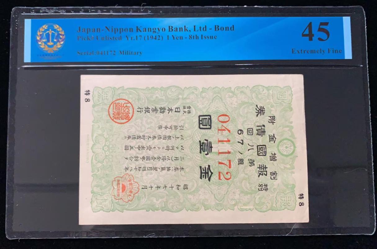 日本 / 日本劝业银行-债券, 1 日元 Yr.17 (1942)- 第八次发行