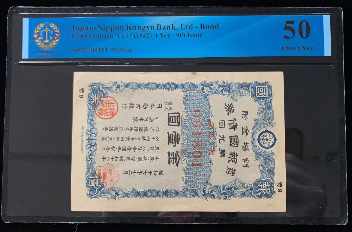 日本 / 日本劝业银行-债券, 1 日元 Yr.17 (1942)- 第九次发行