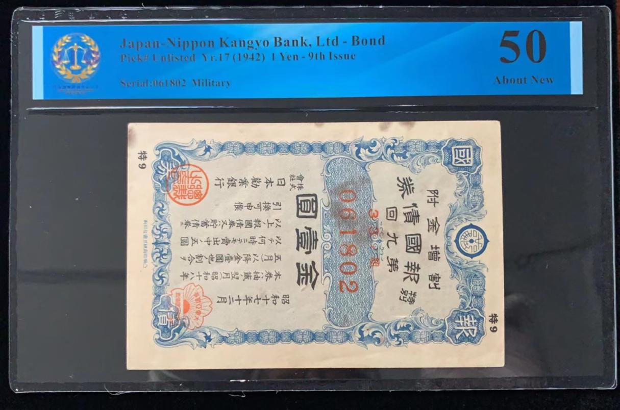 日本 / 日本劝业银行-债券, 1 日元 Yr.17 (1942)- 第九次发行