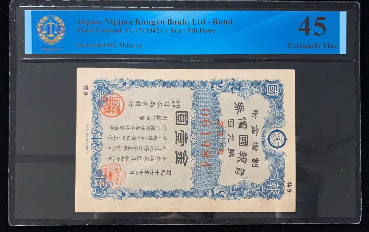 日本 / 日本劝业银行-债券, 1 日元 Yr.17 (1942)- 第九次发行