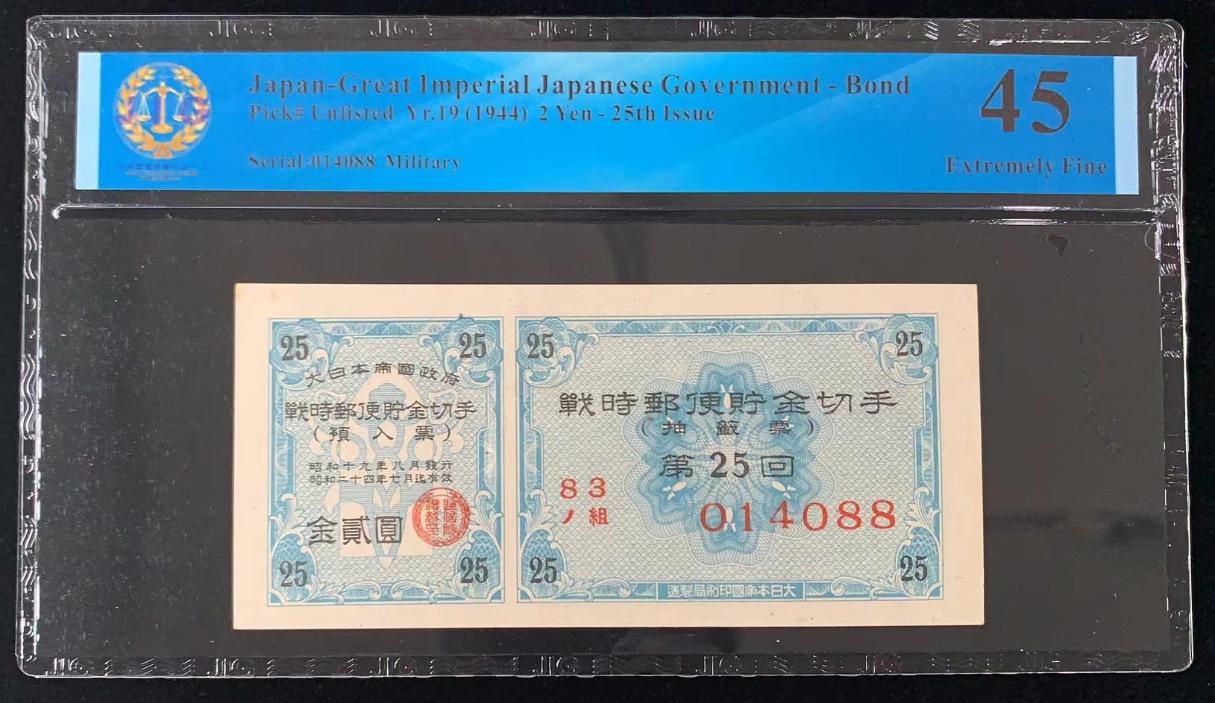 日本 / 大日本帝国政府-债券, 2 日元 Yr.19 (1944)- 第二十五次发行