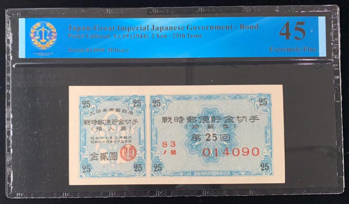 日本 / 大日本帝国政府-债券, 2 日元 Yr.19 (1944)- 第二十五次发行