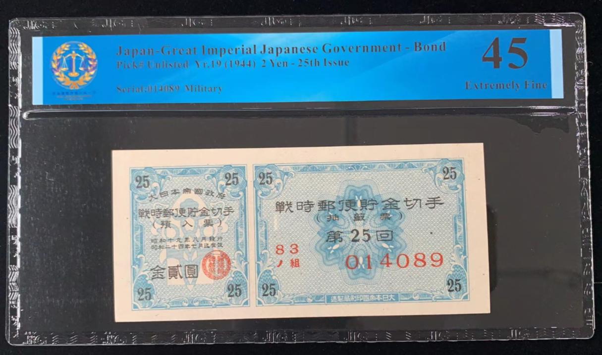 日本 / 大日本帝国政府-债券, 2 日元 Yr.19 (1944)- 第二十五次发行