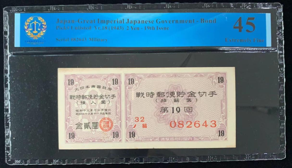 日本 / 大日本帝国政府-债券, 2 日元 Yr.18 (1943)- 第十九次发行