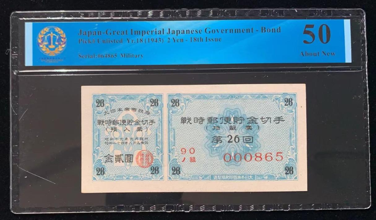 日本 / 大日本帝国政府-债券, 2 日元 Yr.18 (1943)- 第十八次发行