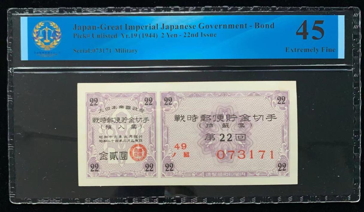 日本 / 大日本帝国政府-债券, 2 日元 Yr.19 (1944)- 第二十二次发行