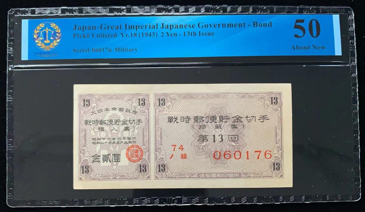 日本 / 大日本帝国政府-债券, 2 日元 Yr.18 (1943)- 第十三次发行