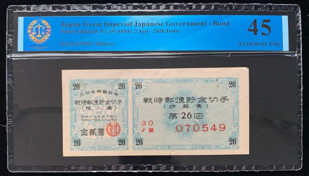日本 / 大日本帝国政府-债券, 2 日元 Yr.19 (1944)- 第二十六次发行