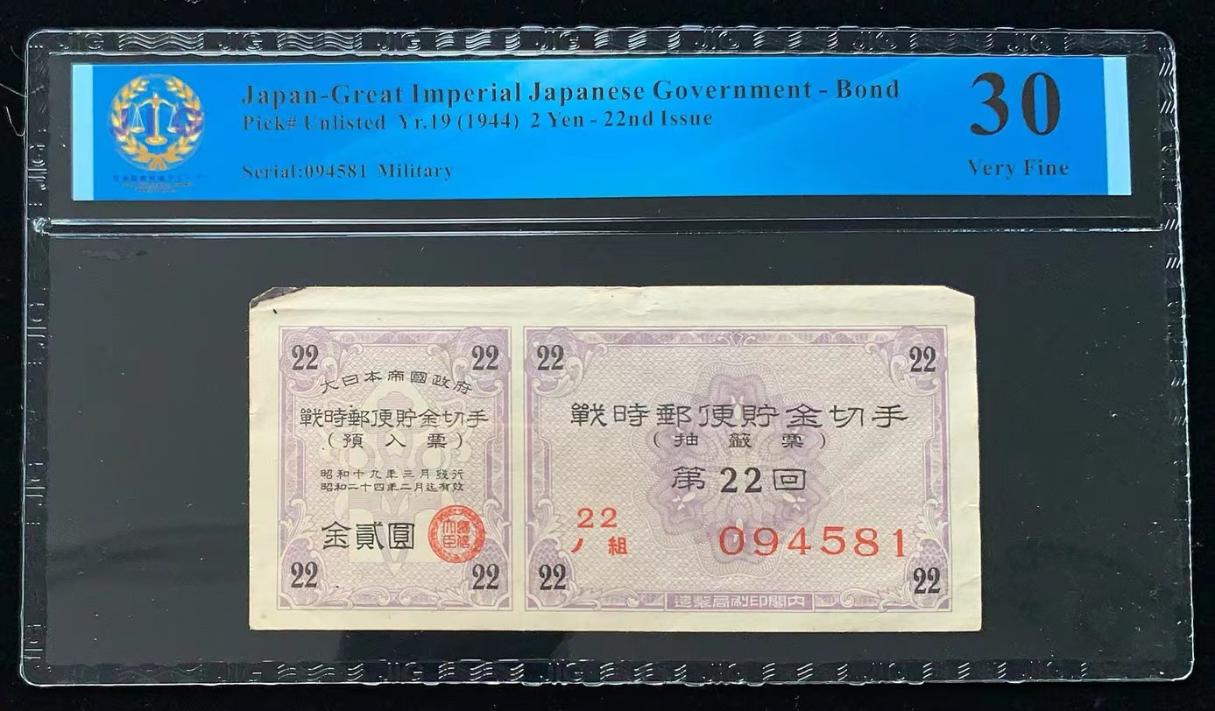 日本 / 大日本帝国政府-债券, 2 日元 Yr.19 (1944)- 第二十二次发行