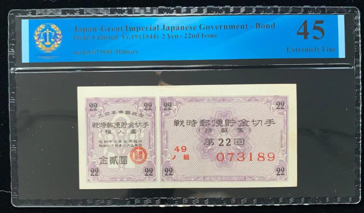 日本 / 大日本帝国政府-债券, 2 日元 Yr.19 (1944)- 第二十二次发行