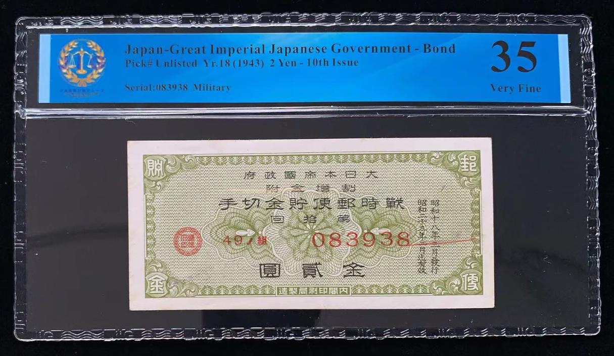 日本 / 大日本帝国政府-债券, 2 日元 Yr.18 (1943)- 第十次发行