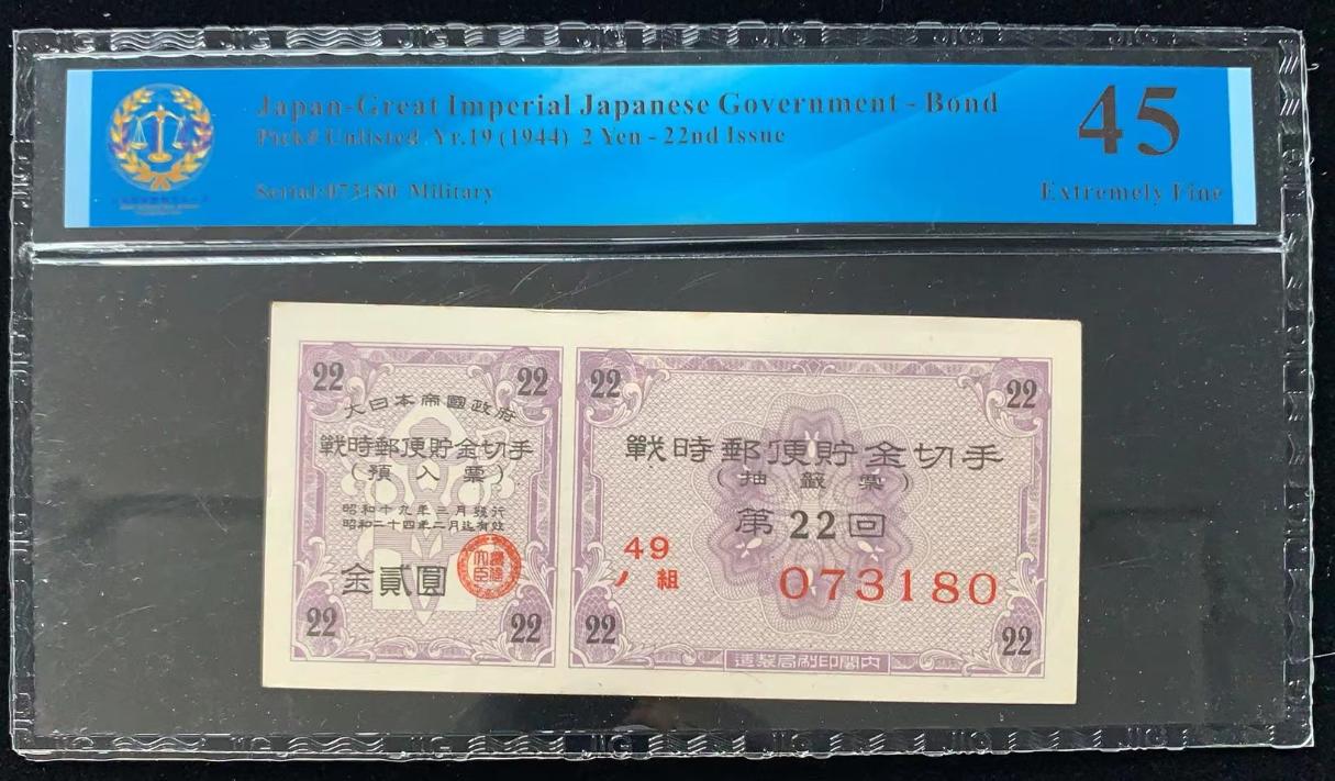 日本 / 大日本帝国政府-债券, 2 日元 Yr.19 (1944)- 第二十二次发行