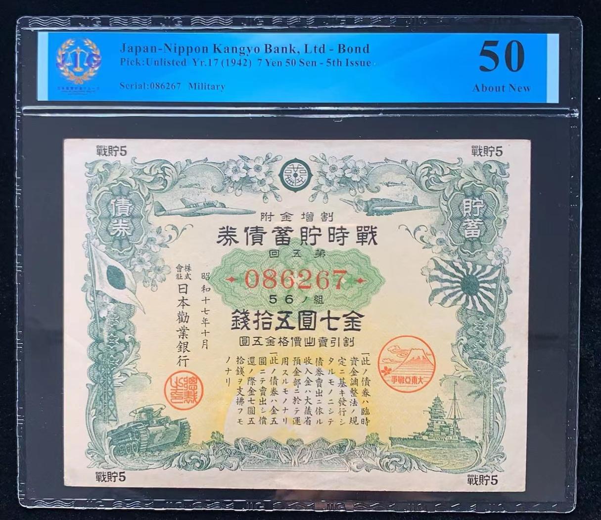 日本 / 日本劝业银行-债券, 7 日元 50 日元 Yr.17 (1942)- 第五次发行