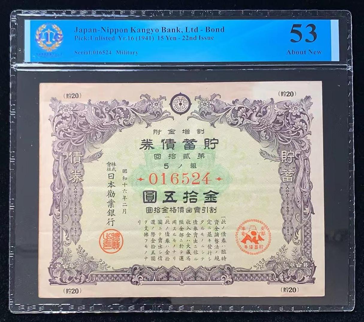 日本 / 日本劝业银行-债券, 15 日元 Yr.16 (1941)- 第二十二次发行