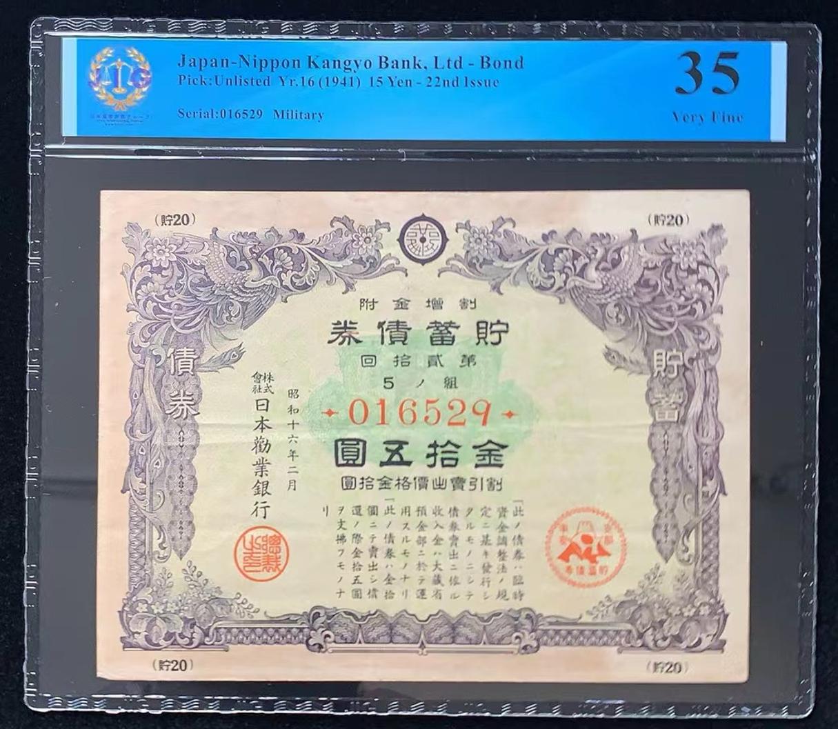 日本 / 日本劝业银行-债券, 15 日元 Yr.16 (1941)- 第二十二次发行