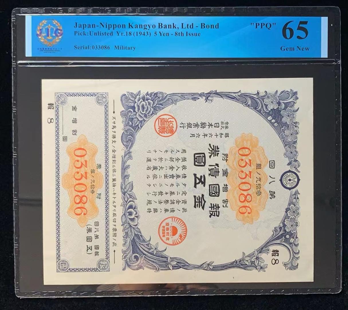 日本 / 日本劝业银行-债券, 5 日元 Yr.18 (1943)- 第八次发行