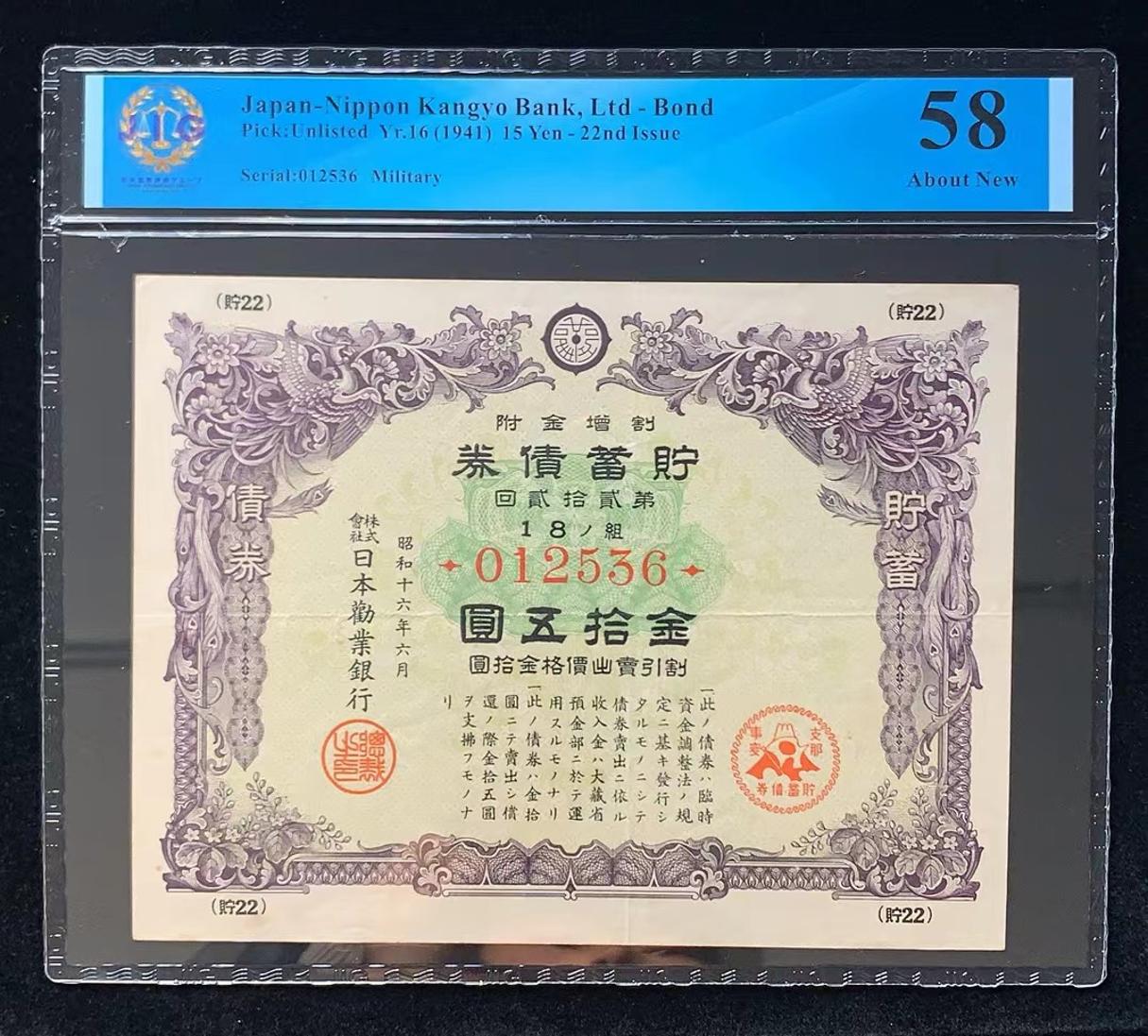 日本 / 日本劝业银行-债券, 15 日元 Yr.16 (1941)- 第二十二次发行