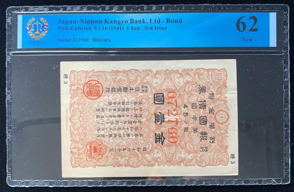 日本 / 日本劝业银行-债券, 1 日元 Yr.16 (1941)- 第三次发行