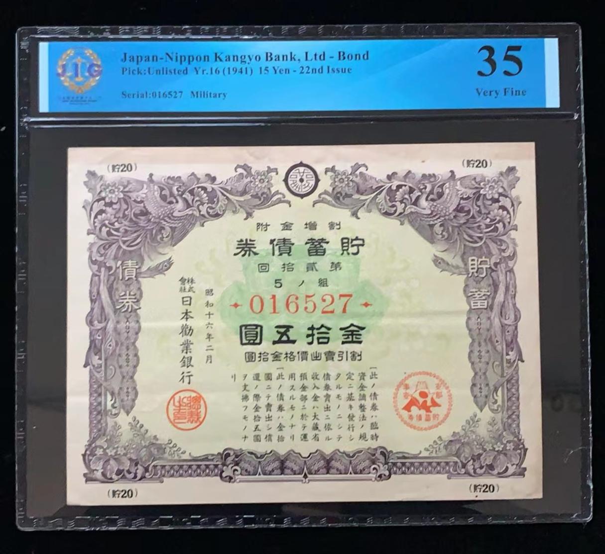 日本 / 日本劝业银行-债券, 15 日元 Yr.16 (1941)- 第二十二次发行