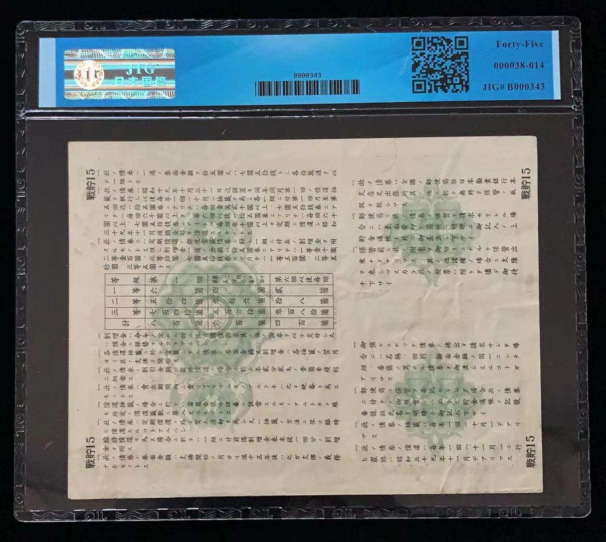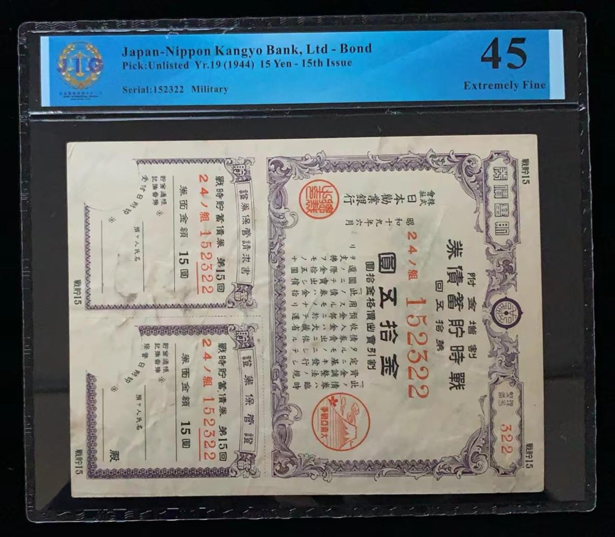 日本 / 日本劝业银行-债券, 15 日元 Yr.19 (1944)- 第十五次发行