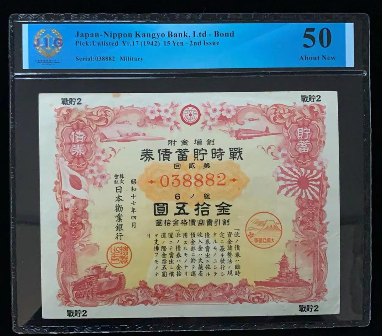 日本 / 日本劝业银行-债券, 15 日元 Yr.17 (1942)- 第二次发行