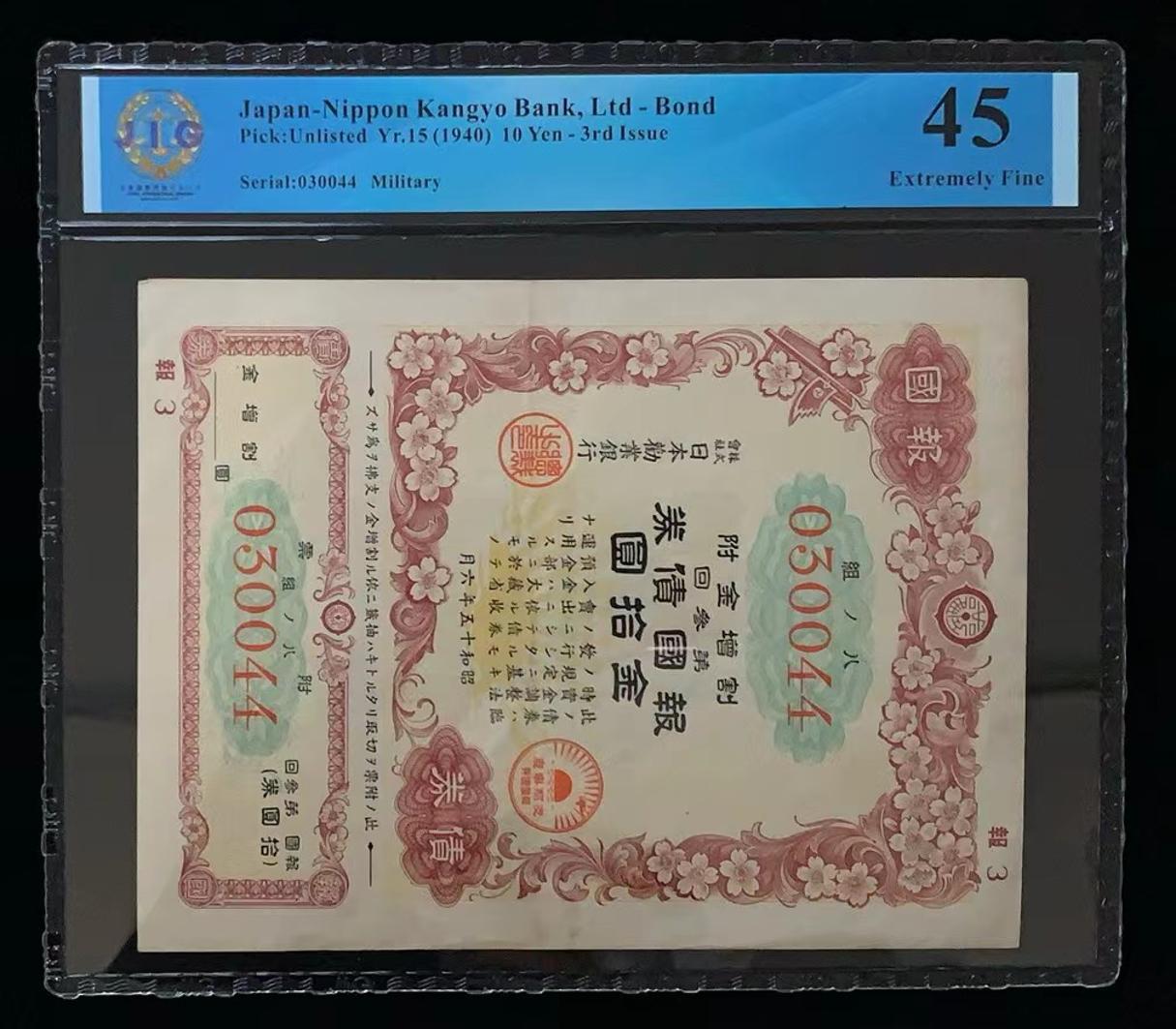 日本 / 日本劝业银行-债券, 10 日元 Yr.15 (1940)- 第三次发行